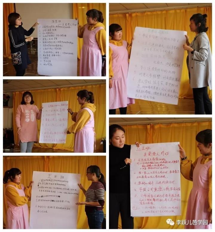 大家头脑风暴,探求自家老人的需求,联系平时自己和父母相处的感受,针对各种不同情况,探讨了许多方案,也进行了许多创造。
