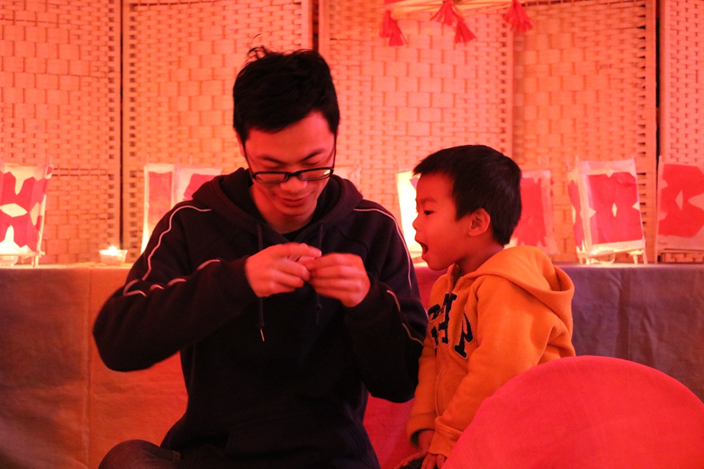 当舞狮团队拿掉服装开始谢幕的时候,孩子们开始高呼:“原来里面还有两个老师啊!那是后面老师的腿,盘龙和奥运和我一样也只有两条腿”,之后伴随着一阵笑声~