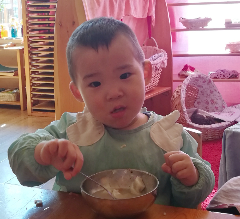 第一次吃汤圆的小豆丁,我还在适应幼儿园呢~